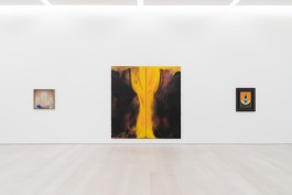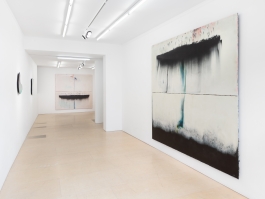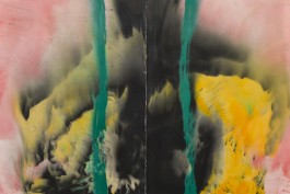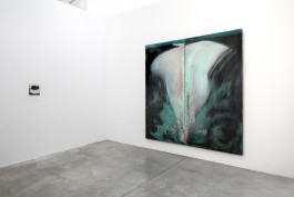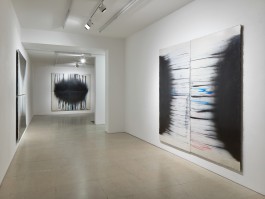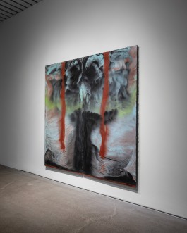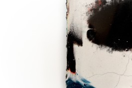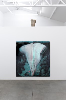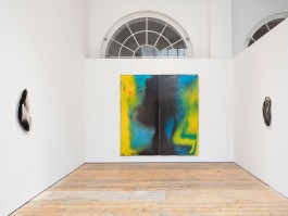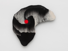 Within these large, energetic pieces, there are also moments of intense darkness, suggestive of a vacuum or third dimension that the viewer might be able to tentatively enter. Three smaller monochrome works further evoke this somewhat supernatural force. These intimately scaled pieces contain potent blasts of energy, conjuring an infinite depth which belies their simple colour palette. Judge has long combined the stirring techniques of contemporary art movements such as abstract expressionism with the spiritual potency of transcendental and neo-tantric painting. Plaster and colour become more than the sum of their parts in Judge’s pieces, moving beyond the realm of artwork and becoming objects with their own dynamic life. While specific rituals and traditions often feed into Judge’s exhibitions in the form of performance, at Gathering, these pieces are presented devoid of narrative, inviting open interpretation.