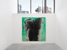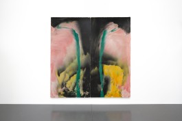 For Cliff and Cleft at Gathering, Judge returns to his characteristically frenetic eruptions of colour. This follows A Ghost Dance, his recent, black-drenched dual exhibition at Matt’s Gallery and the Sunday Painter in London, which drew upon traditional funeral rites and spiritual processions. In Cliff and Cleft, three large,two-panel works hang on the walls, with effervescent bursts of green, pink and black snaking across them. The artist enjoys a naïve, joyful relationship with colour, working quickly and instinctively to apply primary pigments to wet plaster, with the final results falling outside of his control. Through this process, he searches for a sense of internal harmony, using elemental colours to stira powerful emotional response. Once the plaster has set, these pieces are meticulously polished, embedding the pigment within them. It is as though the colour becomes part of the material, rather than having been applied to the surface, imbuing the works with asculptural rather than simply painterly presence.