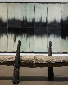 Judge intentionally keeps his work slippery. It moves with ease from suggestions of human-made to natural origin; sculpture to painting; artistic to spiritual roots. He embraces the untethered nature of abstraction, evoking an abundant range of feelings and connections depending upon the viewer’s own background and experience. In front of these pieces – or indeed while walking upon Untitled (rock risen cleft cliff) – the visitor’s personal history becomes important, given space to make their own connections, as the artist himself revels in the ineffable and intangible potential of his materials.