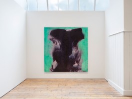 For Cliff and Cleft at Gathering, Judge returns to his characteristically frenetic eruptions of colour. This follows A Ghost Dance, his recent, black-drenched dual exhibition at Matt’s Gallery and the Sunday Painter in London, which drew upon traditional funeral rites and spiritual processions. In Cliff and Cleft, three large,two-panel works hang on the walls, with effervescent bursts of green, pink and black snaking across them. The artist enjoys a naïve, joyful relationship with colour, working quickly and instinctively to apply primary pigments to wet plaster, with the final results falling outside of his control. Through this process, he searches for a sense of internal harmony, using elemental colours to stira powerful emotional response. Once the plaster has set, these pieces are meticulously polished, embedding the pigment within them. It is as though the colour becomes part of the material, rather than having been applied to the surface, imbuing the works with asculptural rather than simply painterly presence.