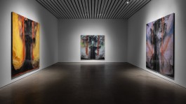 This all results in a gleaming, vibrating surface where monolithic forms, seething horizons, and emanations of colour rise up from the solid granite-like depth beneath. The interplay between the granular and cosmic playout here and there is a real sense of a material phenomenon taking place, the remnants of which appear both crystallised and in a state of flux. The works as such exist in the present moment; Harminder has referred to them not as paintings but portals that offer us a wide plane to look through, allowing for broader contemplation to take place.