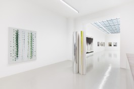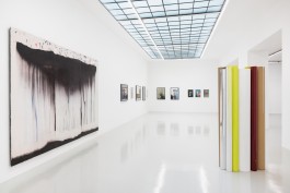 Andreas Reiter Raabe makes painting and sculpture that arrives out off a sort of hands-off process. With the machinery of production existing somewhere between the artist and the result, Reiter Raabe allows, somehow apparently with little emotion, the paint to fall on the canvas in smears, blops and plops. The sifting process which has already taken the mark away from the hand uses a touch that in its own terms neither succeeds nor fails, but that is, to a certain extent, determined by a language that surrounds the success and failure of abstract painting. It is also one that can be judged by different criteria. Is this a ‘good one’, both artist and expectant observer enquire, is it lovely, what does that mean? Reiter Raabe’s process mimics the early days of a printing press; the production of and laying out of written and visual language that is neither basic nor primary, but in this case with a palette that looks if it has already been mixed in another life. The machinery of production in turn mimics a cottage industry of constructed rationale where paint, tired rather than fresh, arrives in a roundabout way and ends up, propped, hung on the wall, a slice of horizontal brought flat. When also making a flat surface stand up on its own, Reiter Raabe’s works both mimics and becomes a sculpture.